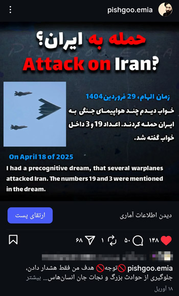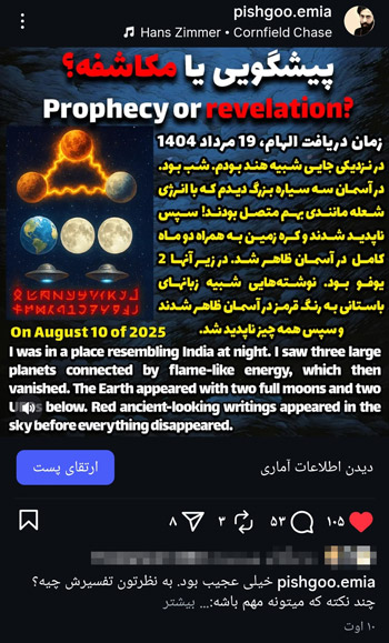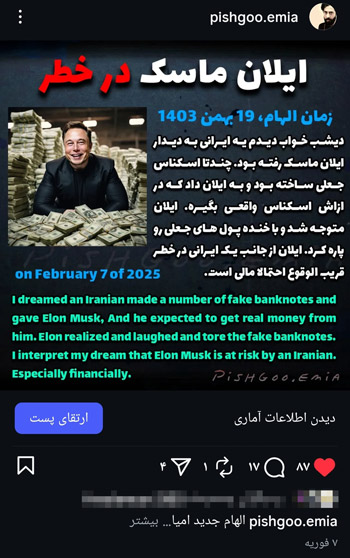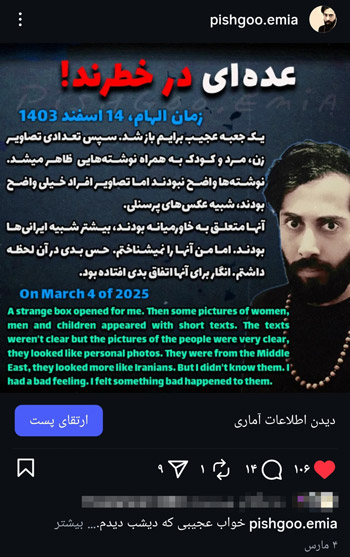 ایمان صدیقی ملقب به امیا توانایی دورآگاهی و پیشگویی دارد و حاضر است در هر چالش علمی معتبر شرکت کند و با دانشمندان برای اثبات آن همکاری کند. او در حال حاضر در چالش نیم میلیون دلاری اثبات ماورا امریکا به نام CFI در حال بررسی و آزمودن است. پیشگویی‌های جدید را در کانال تلگرام پیشگو امیا ببینید: Pishgoo.emia